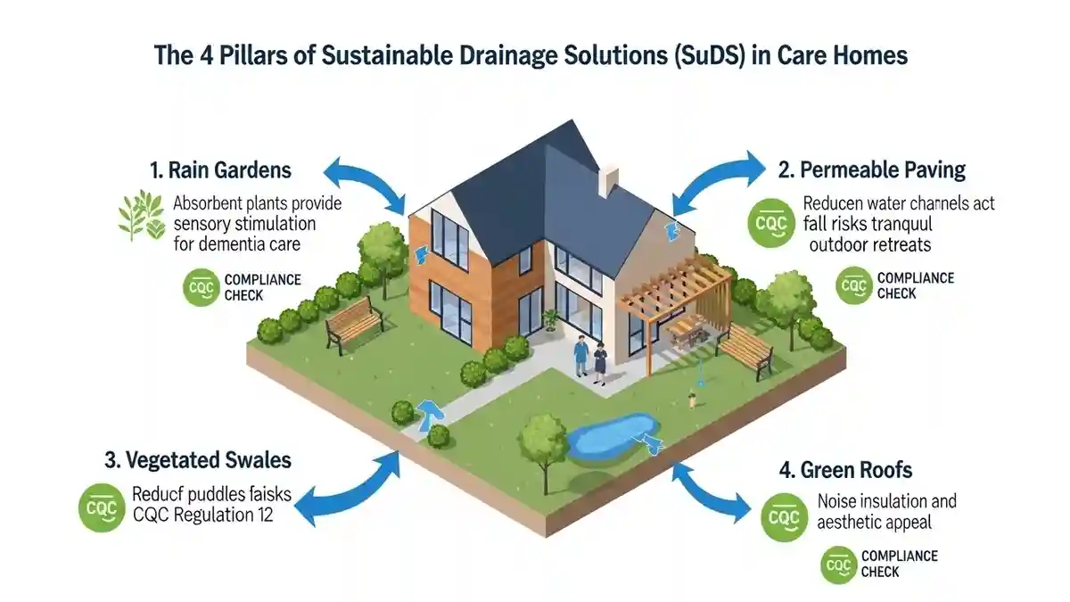The future of sustainable drainage solutions CQC care home design is the integration of SuDS (Sustainable Drainage Systems). In Benfleet, Policy EN18 of the Local Plan encourages SuDS to manage surface water runoff, which often plagues the surrounding area.